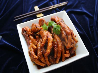 ? ? 鍋中燒熱油,放入少許食鹽,桂皮,八角和姜片,再放入瀝干的雞爪,油炸一下。油炸好的雞爪,瀝干油后需要放入冰水中泡一小時。鍋中燒熱油,倒入桂皮,八角,生姜,花椒等調味料,煸出香味,倒入雞爪,加入適當的食鹽,醬油,老抽上色,一起翻炒均勻,隨后加入開水,漫過雞爪就可以了。蓋上鍋蓋大火煮,也可放入煲中煮二十分鐘,使做出來的五香雞爪更加軟爛,入口即化。